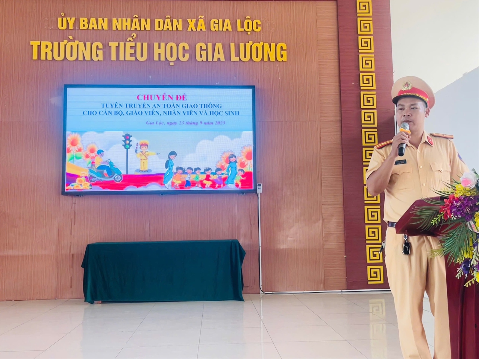 Ngày 23/9/2025, Trường Tiểu học Gia Lương phối hợp với Đội Cảnh sát giao thông TP Hải Phòng và Công an xã Gia Lộc tổ chức hoạt động: “Tuyên truyền về An toàn giao thông” và " Tuyên truyền phòng chống ma túy, các tệ nạn xã hội trong học đường" cho cán bộ, giáo viên và học sinh.