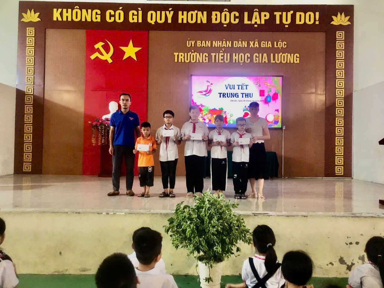 Trong ngày Tết Trung thu sum vầy, thể hiện sự quan tâm của Hội phụ huynh nhà trường và BCH Đoàn xã đã lên trao tặng 10 suất quà (trị giá 2 triệu đồng) cho 10 em học sinh có hoàn cảnh khó khăn trong nhà trường. Đây là những phần quà mang đầy ý nghĩa, giúp các em tăng thêm niềm vui, ấm áp trong ngày Tết Trung thu và khích lệ các em phấn đấu vươn lên trong học tập.