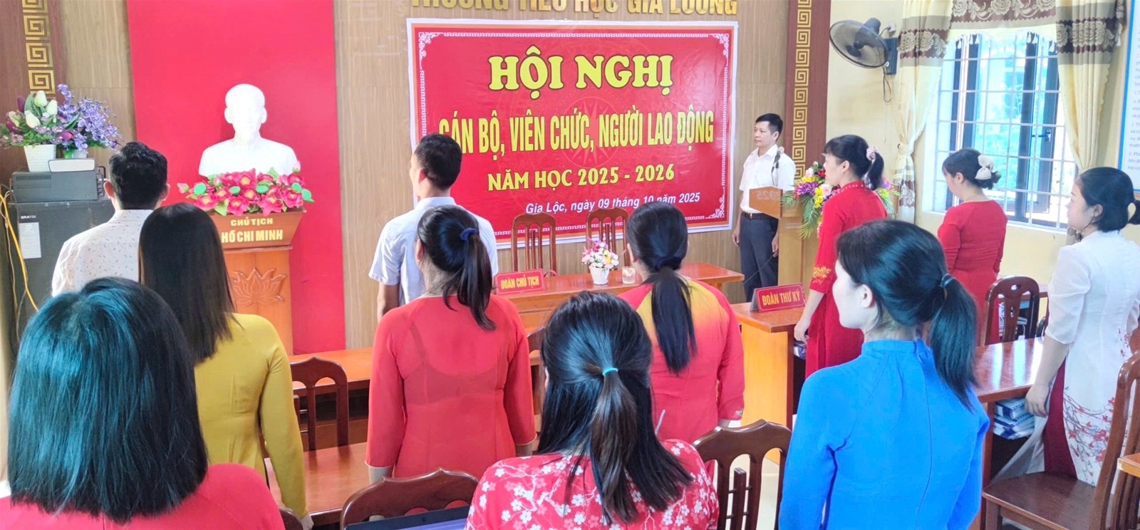 Kết thúc Hội nghị, 100% cán bộ, viên chức, người lao động đã biểu quyết thông qua Nghị quyết Hội nghị CBVC năm học 2025-2026. Sự đồng lòng, thống nhất cao này là nền tảng vững chắc để Trường Tiểu học Gia Lương quyết tâm thực hiện thắng lợi các nhiệm vụ, tạo nên những đột phá mới trong năm học 2025-2026, đóng góp tích cực vào sự nghiệp giáo dục của địa phương.